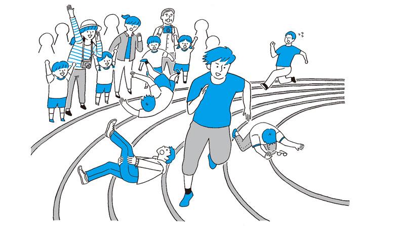 走っている最中に猫背になっていたら「勝ちライン!」、振っている腕が伸びていたら「空地面!」と声をかければ子どもは瞬時に走り方を修正する。親子で日頃から意識する習慣を身につけておこう。