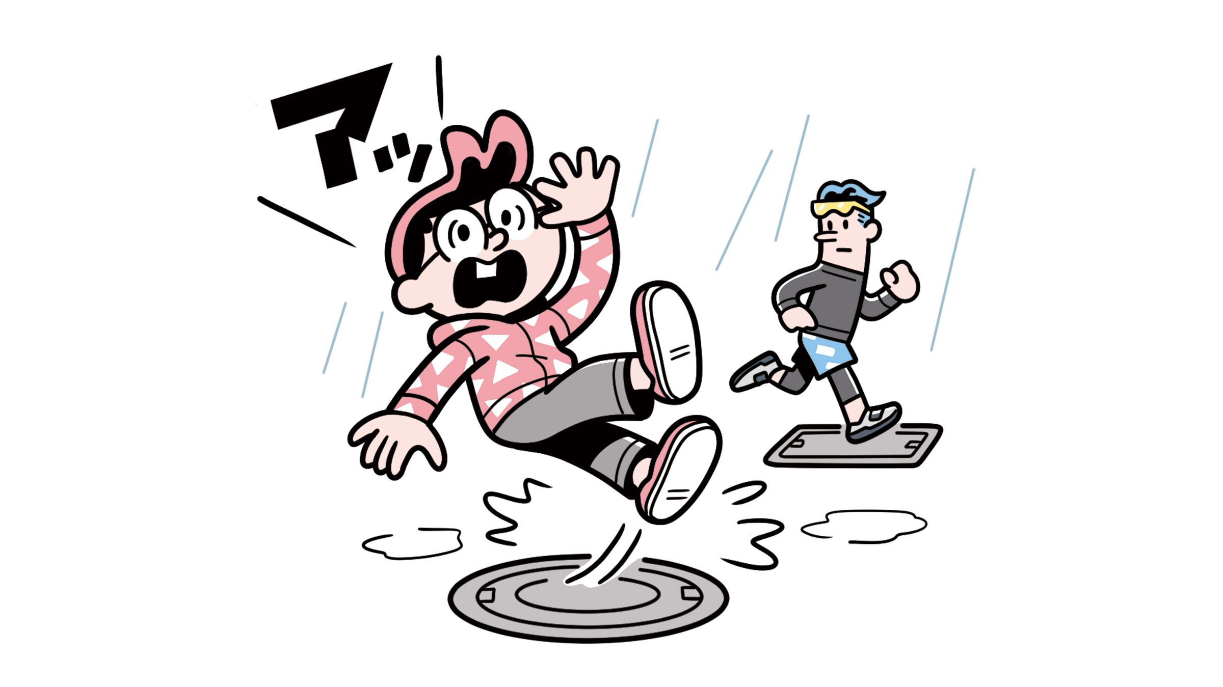 雨の日は路面がスリップしやすい。特にマンホールや石畳は要注意。「レース時の前半は混雑していて、マンホールに気づかず、滑ってしまうことも。転倒を避けるためにも、雨の日は地面をしっかりとらえることができるグリップ力の高いシューズを履きたいですね」。また通気性と防水性に優れたものを選ぶことも大切だ。懐に余裕があるランナーは雨用シューズを用意しておくと、安全、快適に走ることができる。