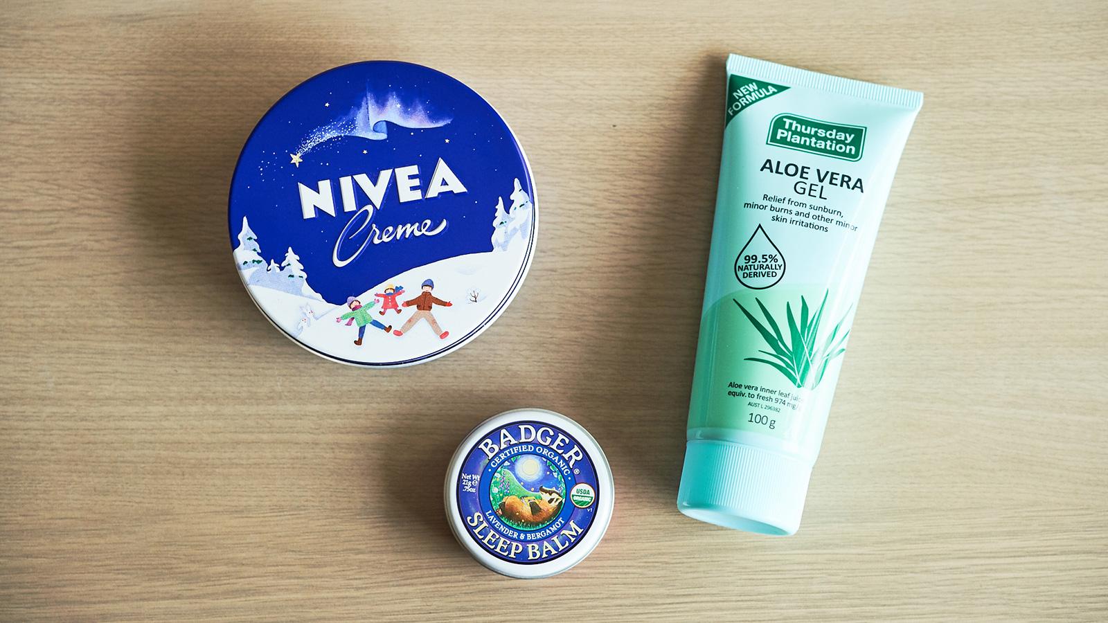 「保湿剤と一言で言っても、固形のものからさらっとしたジェルまで、種類は様々。例えば、冬場は乾燥がひどいですから、僕は油分がリッチなバームタイプのものを使っています」