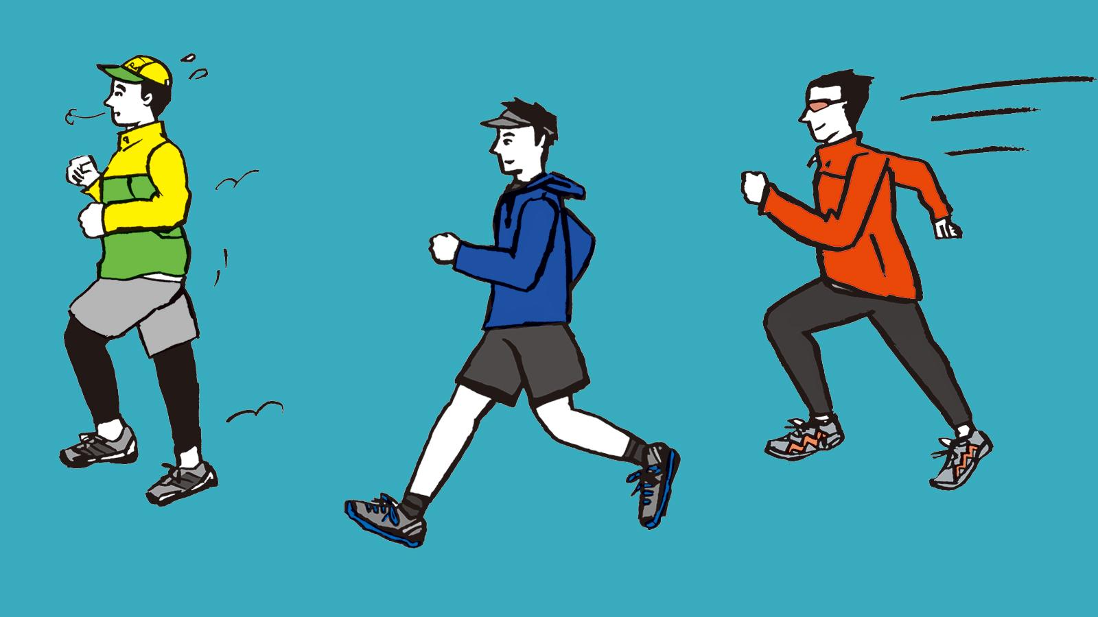 初級者は5分走り続けるだけでも瀕死の状態。15分走り続けられたら上出来のレベル。キロ10分ペースの15分走が妥当なところ。強度は6メッツとなる。中級者はキロ7.5分ペースで30分で運動強度は8メッツ。上級者はキロ6分での1時間走くらいがルーティン。運動強度はぐんと上がって10メッツ。