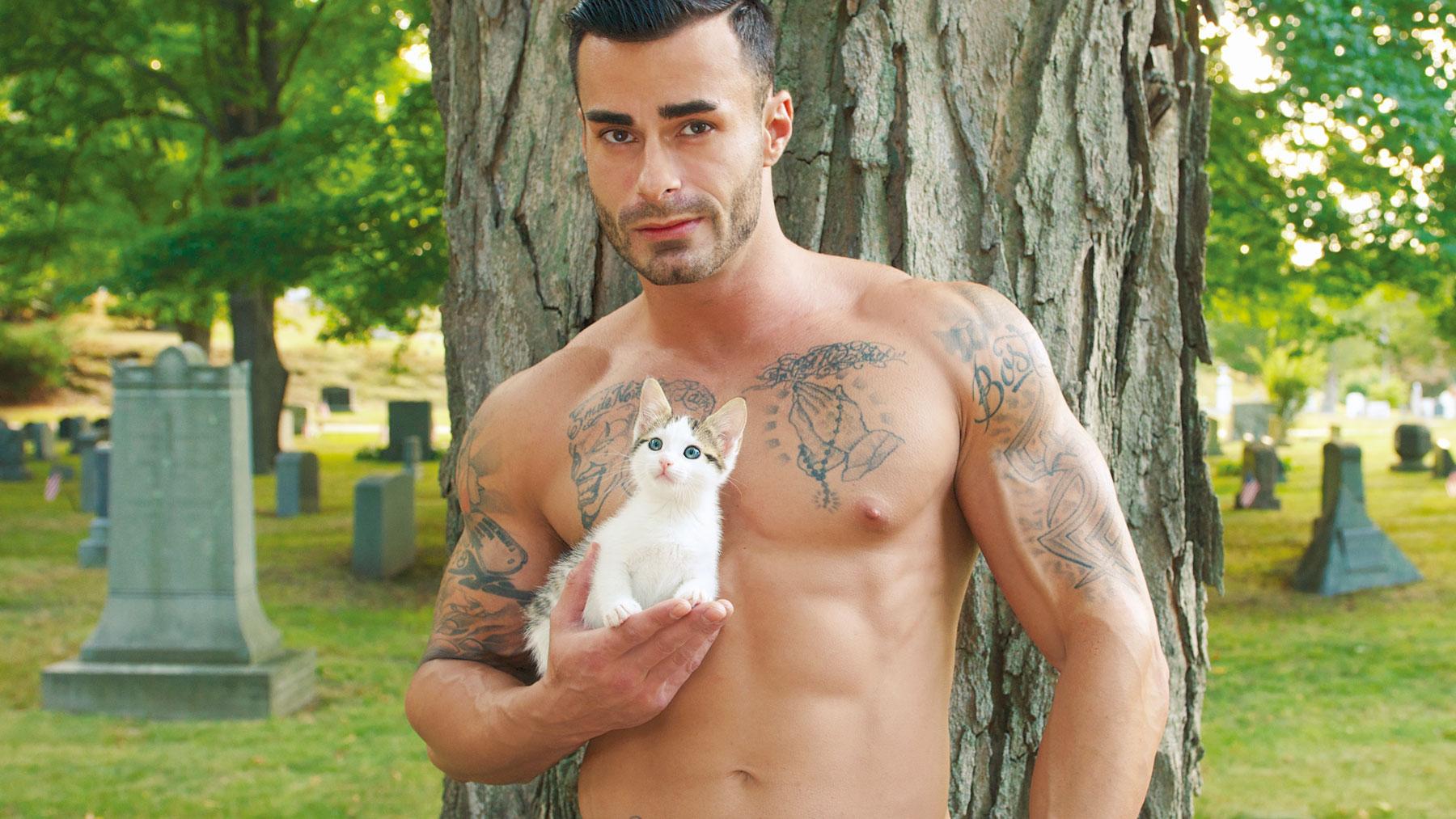 キョトンとした純朴な子猫と美スマイルを浮かべるマッチョ、という異種な組み合わせがたまらない猫カレンダーを発見。