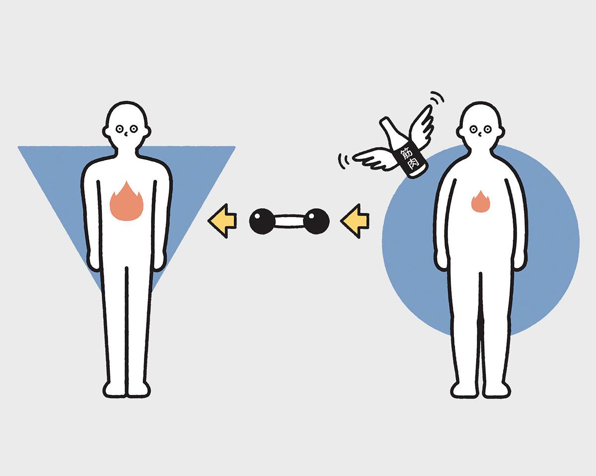 太らないカラダ作りのために筋トレに励んでいると、緩んだボディラインにメリハリが生じて細マッチョな逆三体型に近づける。アスリートはよく「練習は裏切らない」と言うけれど、筋トレだって裏切らないから、やればやるほどボディラインは目指す姿に近づいてくる。変貌ぶりがはっきり目に見えるから、気持ちが折れずに高いモチベーションを保ちながら筋トレが続けられる。