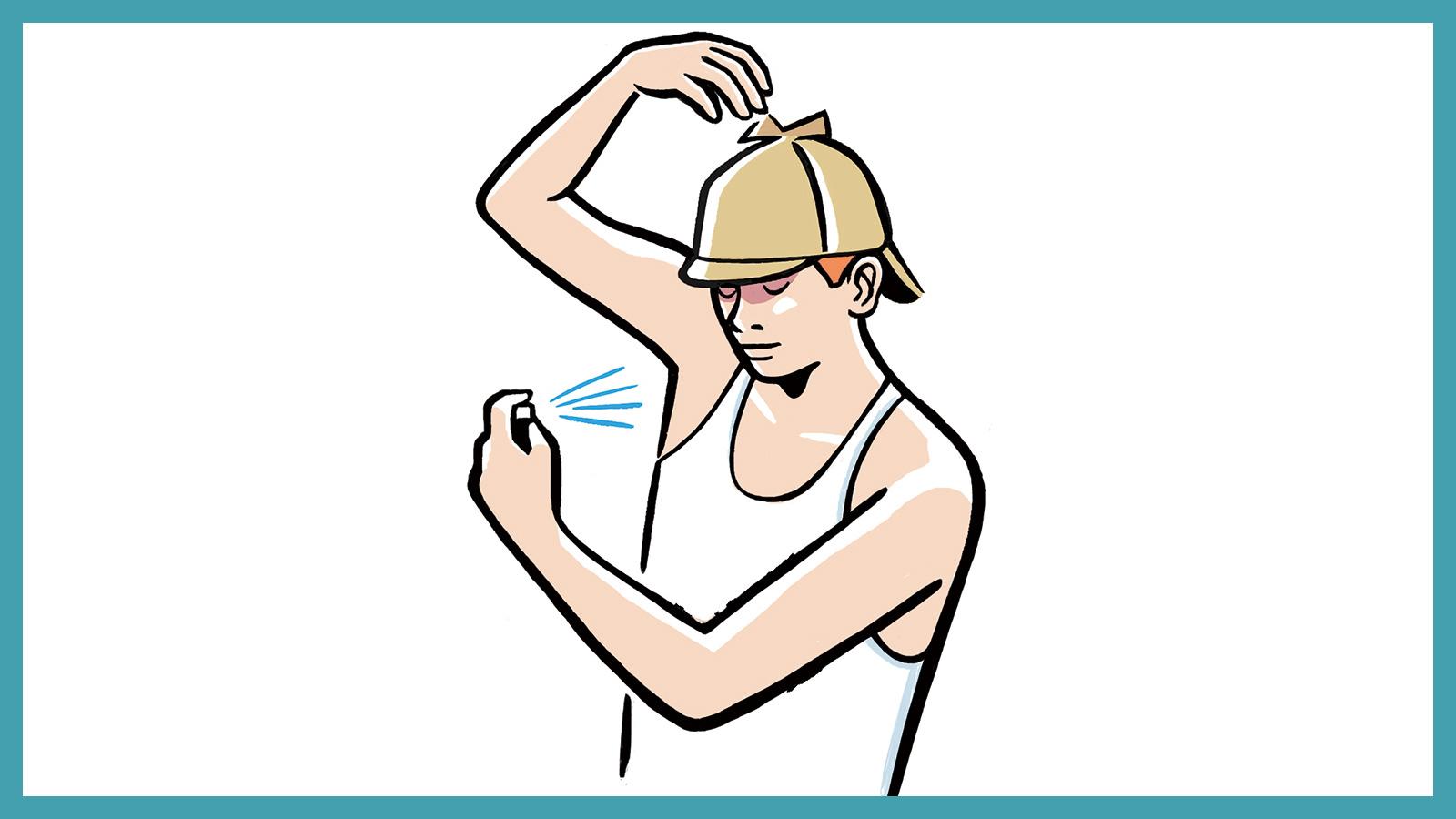 まず、朝一番で制汗剤を脇の下などに塗り、余分な汗の分泌を防ぐ。よく、汗をかいた後に制汗スプレーをプシューッとやって対処した気になっている男子がいるが、これは間違い。制汗剤を使う適切なタイミングは、汗が出る前、出かける前。