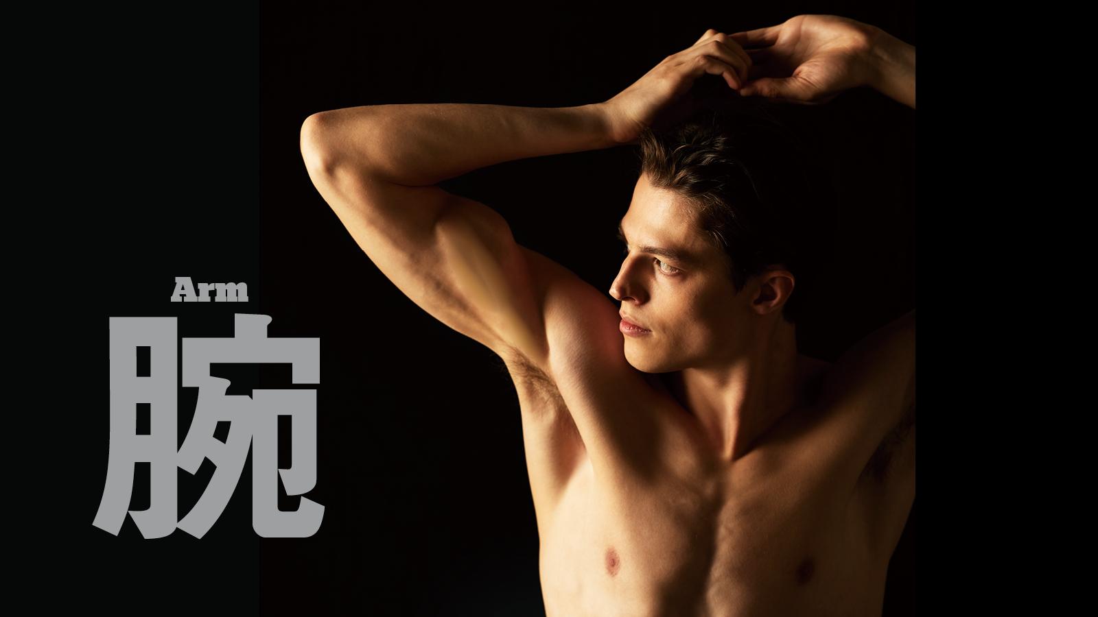 見た目は地味なアーム・アイソメトリクスを、やるとやらないとでは大違い。腕のデザインで重要な上腕三頭筋、および上腕二頭筋の働きをこれで脳に認識させる。脳と腕の筋肉の連携を高めるため、力を入れる部分を集中して収縮させるコツを摑む。呼べば応える、腕筋!