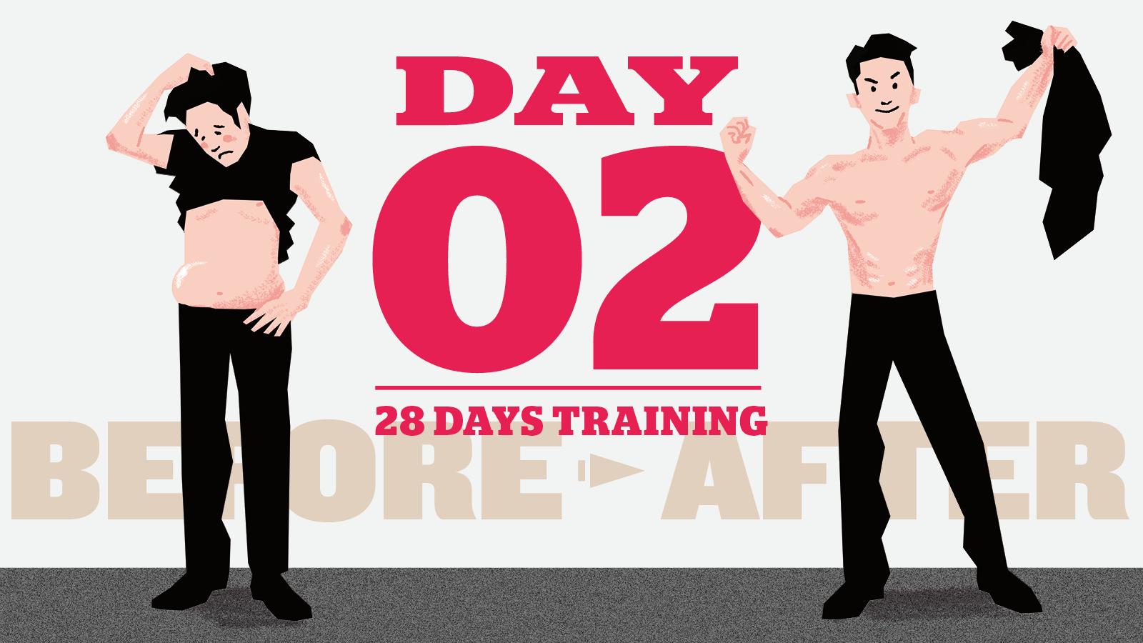 4週間=1か月で「脱げるカラダ」を手に入れるプログラム。これが、2日目にやるべきトレーニングメニュー。