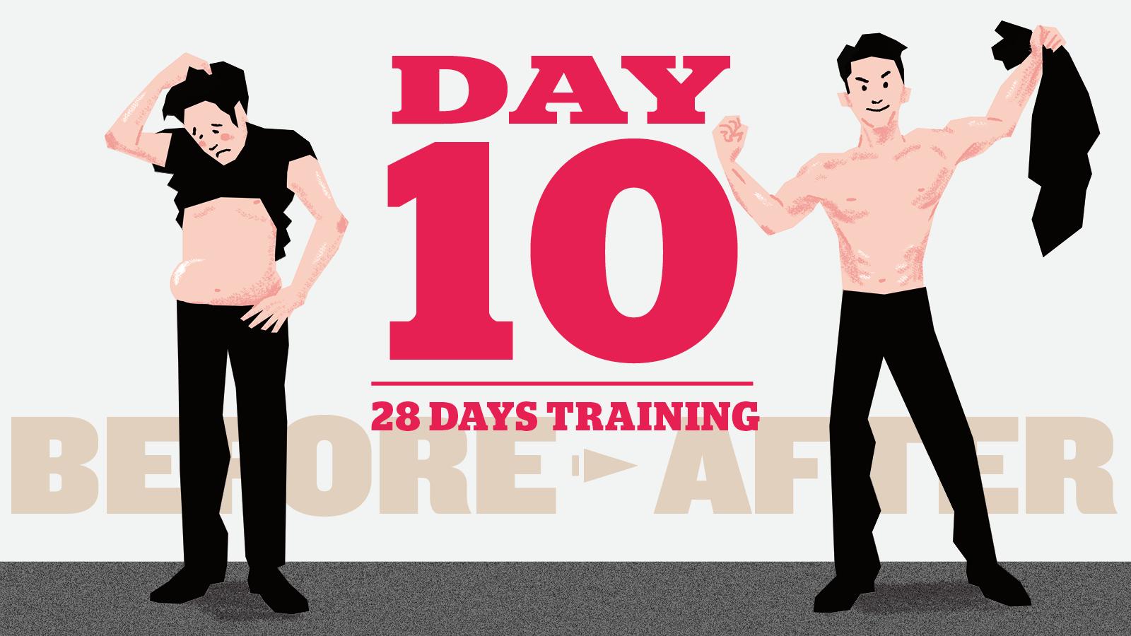 4週間=1か月で「脱げるカラダ」を手に入れるプログラム。これが、10日目にやるべきトレーニングメニュー。