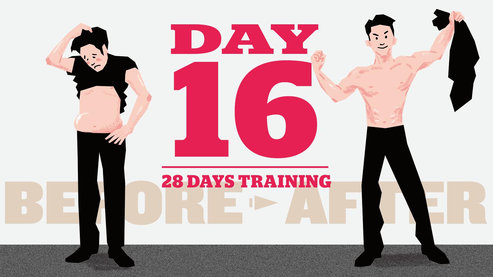 4週間=1か月で「脱げるカラダ」を手に入れるプログラム。これが、16日目にやるべきトレーニングメニュー。
