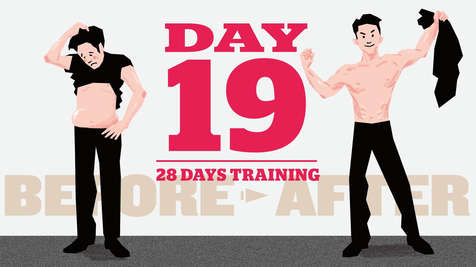 4週間=1か月で「脱げるカラダ」を手に入れるプログラム。これが、19日目にやるべきトレーニングメニュー。