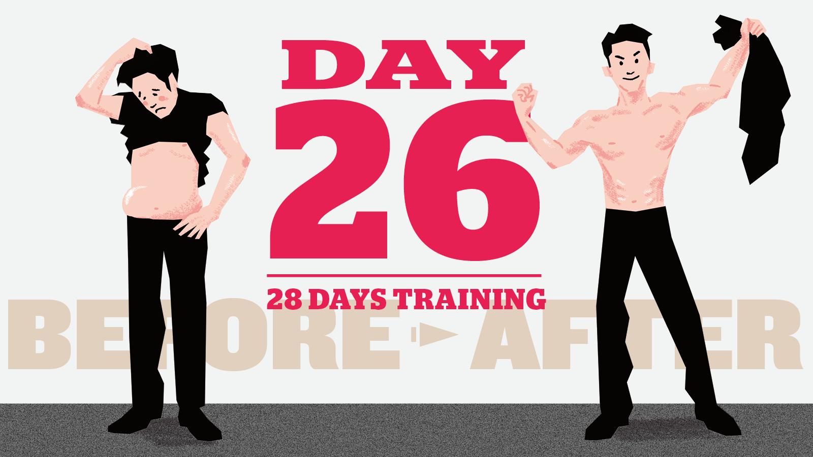 4週間=1か月で「脱げるカラダ」を手に入れるプログラム。これが、26日目にやるべきトレーニングメニュー。