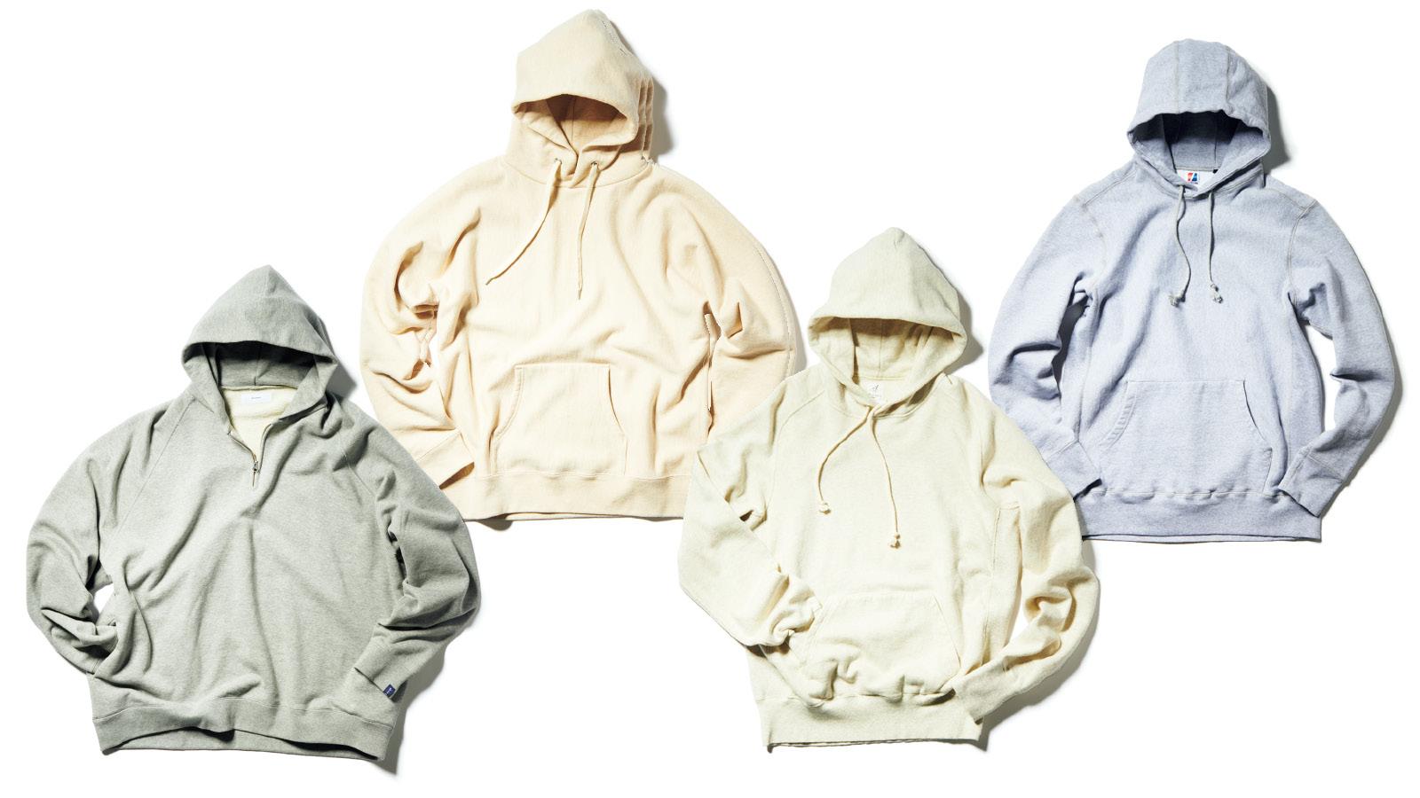 最初に衣替えすべきは、毎日着倒すフーディ。米製の杢グレー、ビンテージが薫る逸品、はたまたモダンなアレンジが利いた別注か。