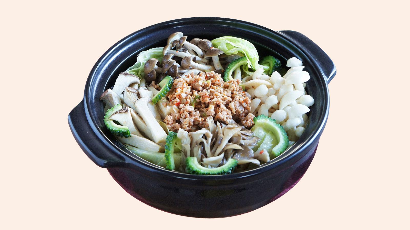 カラダを温めて免疫力を活性化するだけでなく、きのこに豊富なビタミンB群と豚肉が含むビタミンB1が三大栄養素の代謝を促し、エネルギーや筋肉づくりに役立つ。リカバリーにも効果的だ。バルクアップ中なら2倍量の豚挽き肉でタンパク質量を増やして、減量中なら豚挽き肉を鶏挽き肉に置き換えて低カロリーにすると◎。