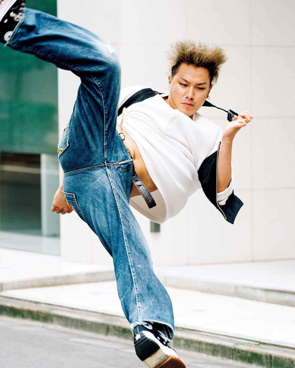 まぁ、難しいことは抜きにして、写真を見てほしい。Daisukeの動き、アナタはできるだろうか。撮影現場にラフな洋服で現れた彼は、何の気なしに、ヒョヒョイって感じで、超人的な動きを披露してくれるのである。
