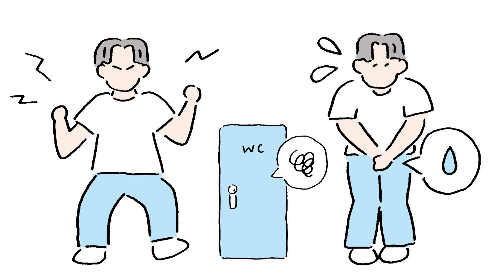 女性ならずとも中高年になると、尿漏れを経験しがち。これは加齢に伴い骨盤底筋群が弱くなるため。ここに男性の場合は肥大していく前立腺が追い打ちをかけ、尿の勢いも切れも悪くなっていく。