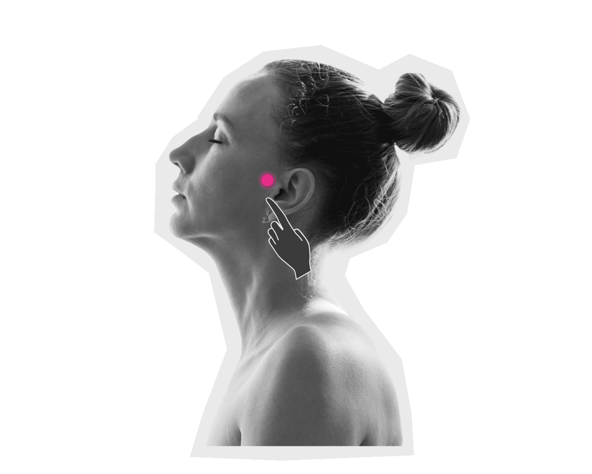 人差し指の腹をツボに当て、垂直にやさしく押し込む。症状のある側だけでも構わないが、できれば左右同様に。十分な休養もお忘れなく。各5秒ずつ3回以上。