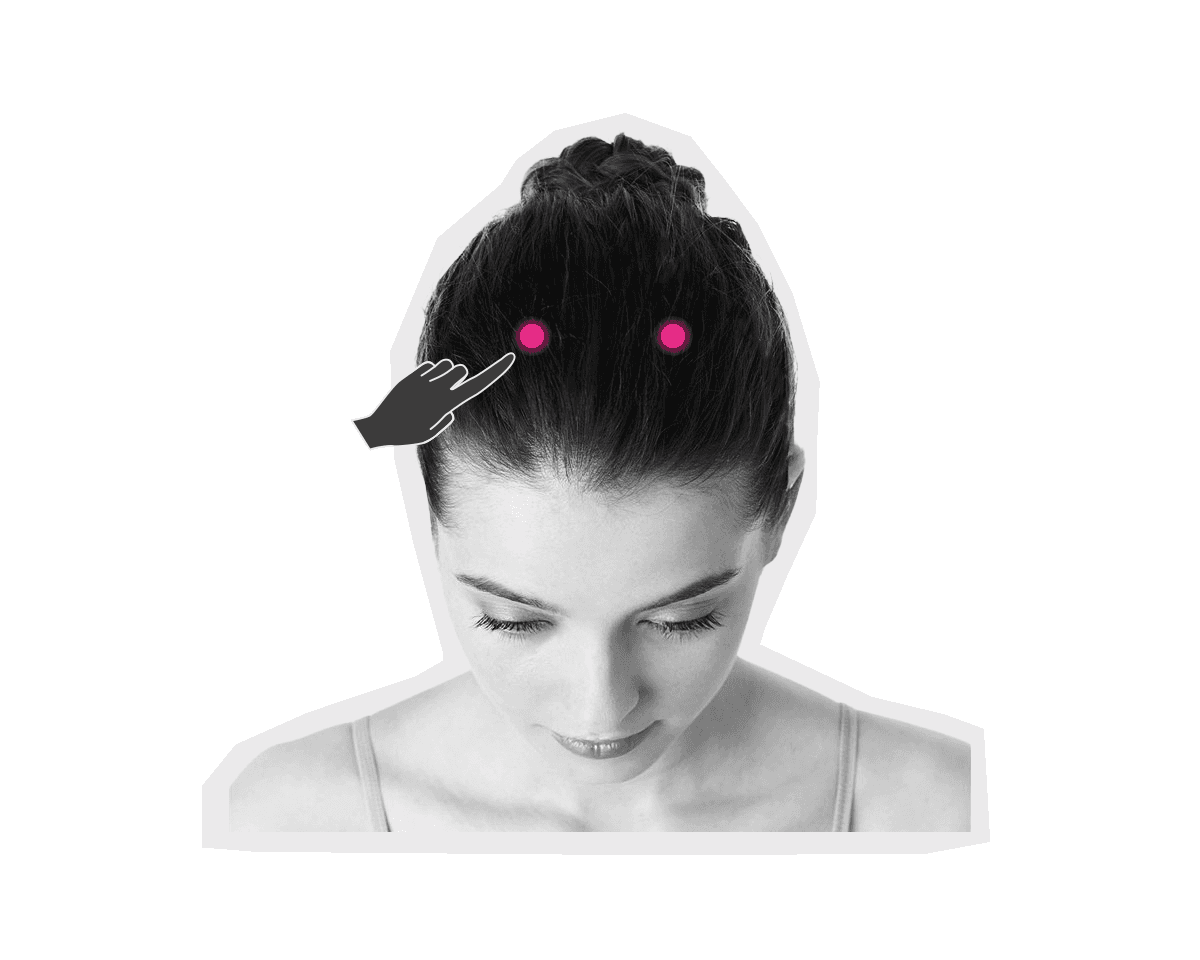 両手の中指の腹をツボに当て、左右同時に頭の中心に向かって押す。入浴時、頭を洗う際のルーティンに加えてみてはどうだろう。5秒ずつ3回以上。