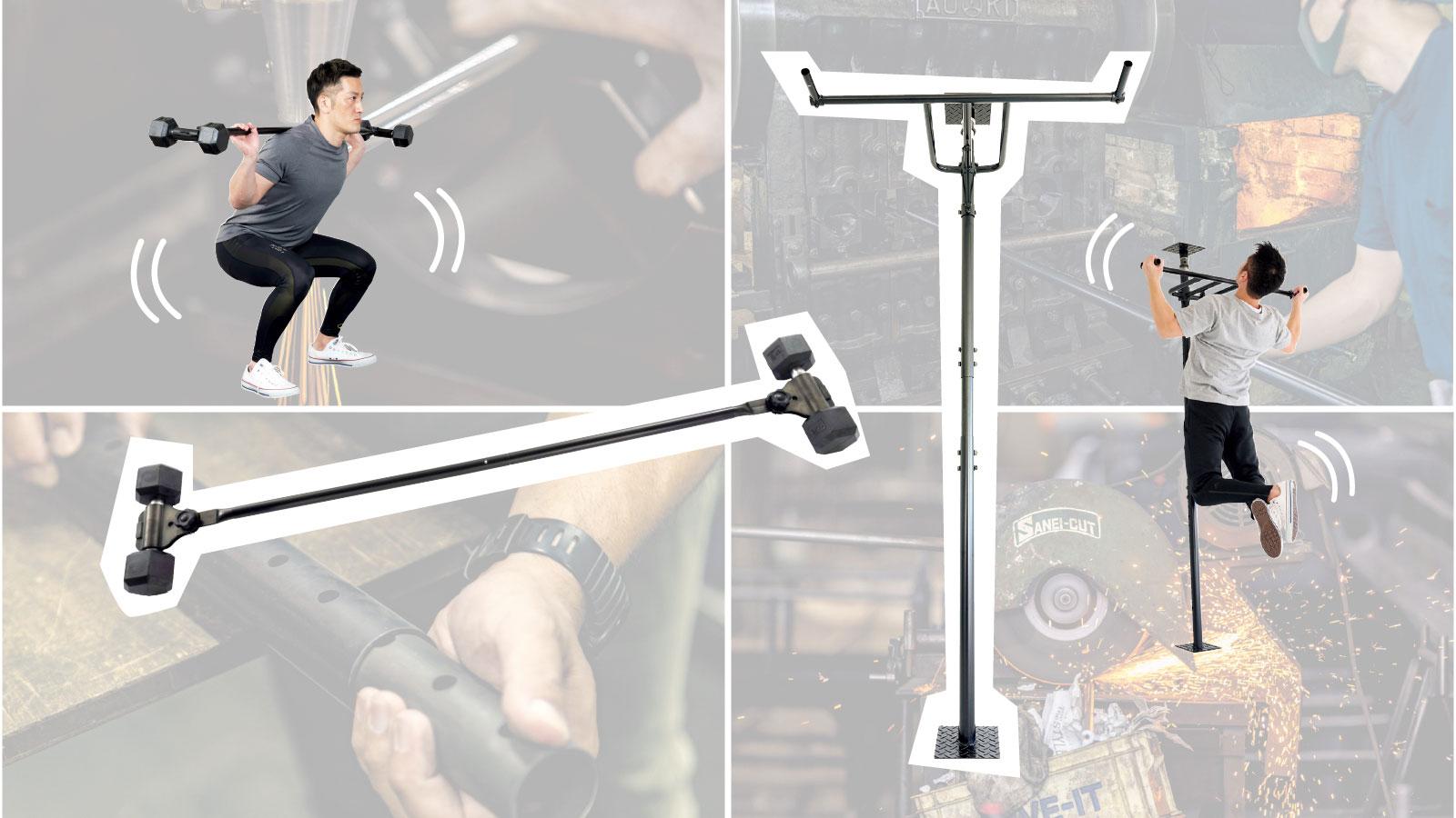 中国などの外国製が多いが、なかには日本製もある。今年、〈TEDDYWORKS〉から発売された2商品もそうだ。《KOMBOバーベル》は、ウェイトプレートの代わりに手持ちのダンベルを取り付けて使う画期的なバーベル。