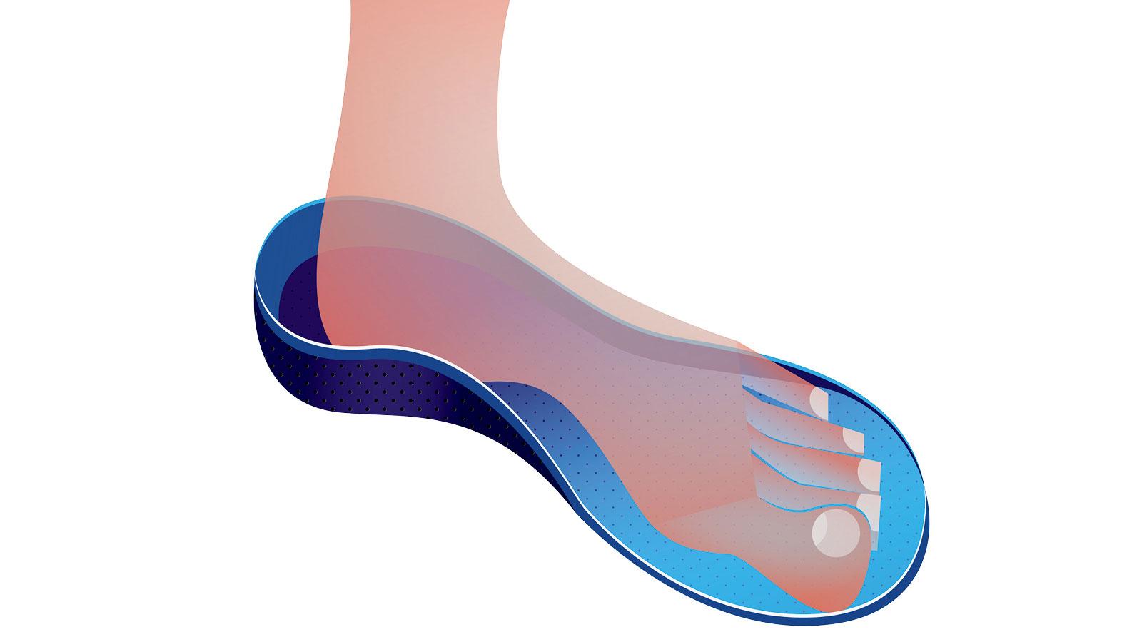 インソールにはトラブルに繫がるクセを整え、正しい歩行動作を促してくれる機能もある。