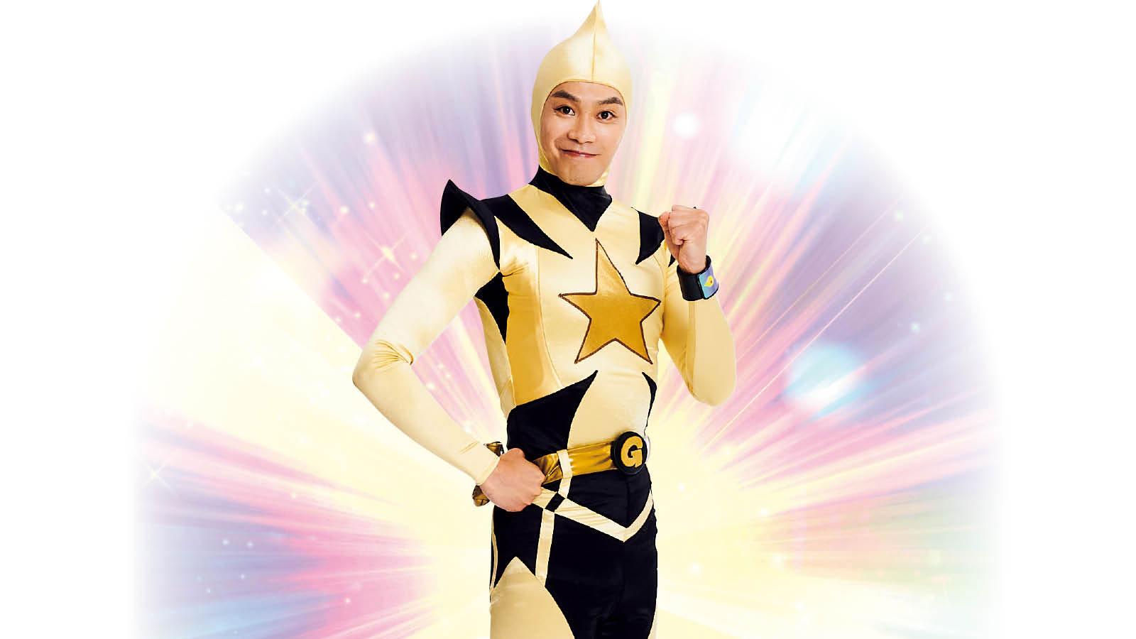 宇宙の彼方からはるばるやってきてくれたのは、ストレッチマン・ゴールド。NHK・Eテレ『ストレッチマン・ゴールド』で活躍中のヒーローだ。