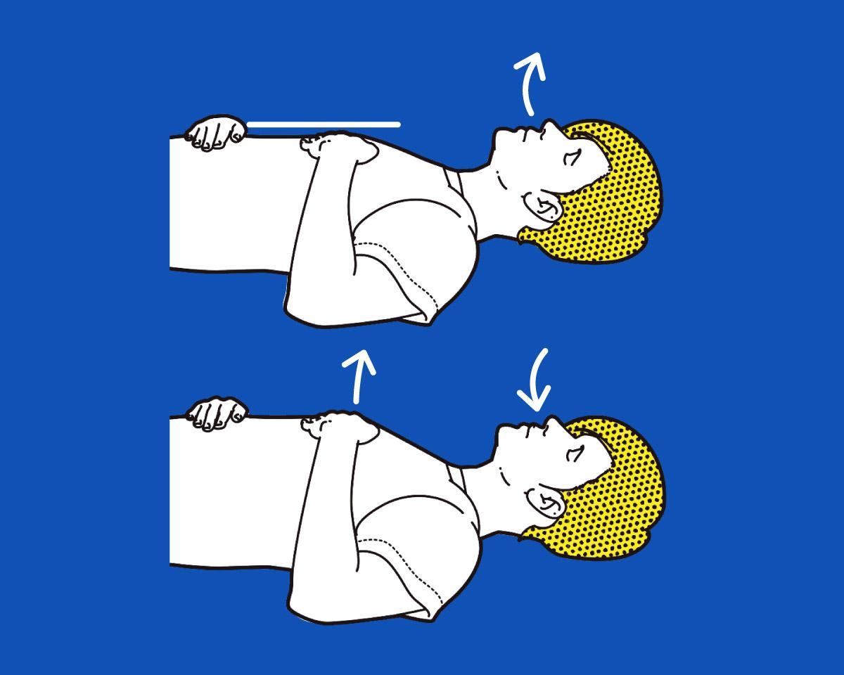 横隔膜の動きが悪くなると、体幹部の他の筋肉がサポートし、呼吸を助ける。しかし、それが慢性化するとますます横隔膜は動かない状態に。横隔膜の出番を増やすためには、それらの筋肉のサポートを抑制する必要がある。