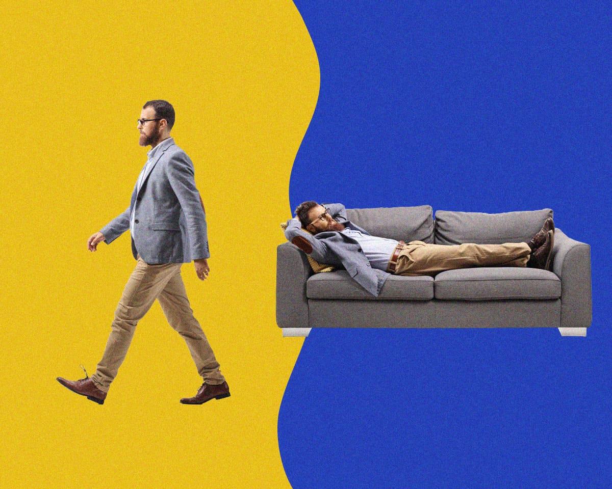 5時間座りっぱなしで作業を行った場合と30分ごとに3分の低強度ウォーキングを差し挟んで作業を行うのとでは、後者の方が圧倒的に疲労軽減効果が高いという報告がある。