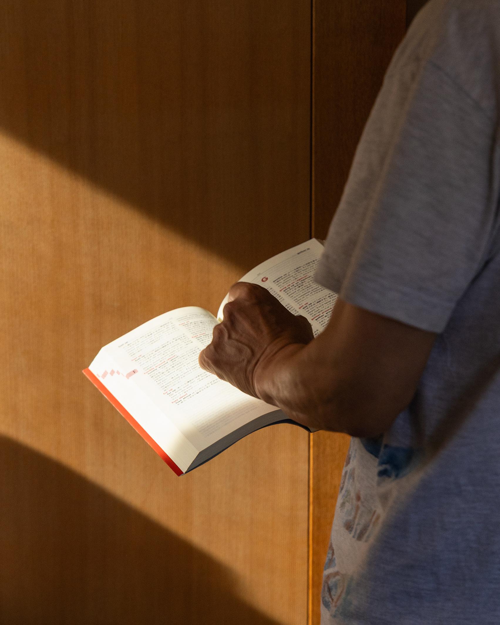 「前の夜に訳した分に手を入れていきます。訳すときはセンテンス単位でしか考えていないから、センテンスとセンテンスのつながりが悪かったりする。読みながら文章全体の流れを摑んで、赤字を入れていきます。せっかく流れが頭に入ってるから続きもちょっとだけ、でも1時間以上はやれないな」