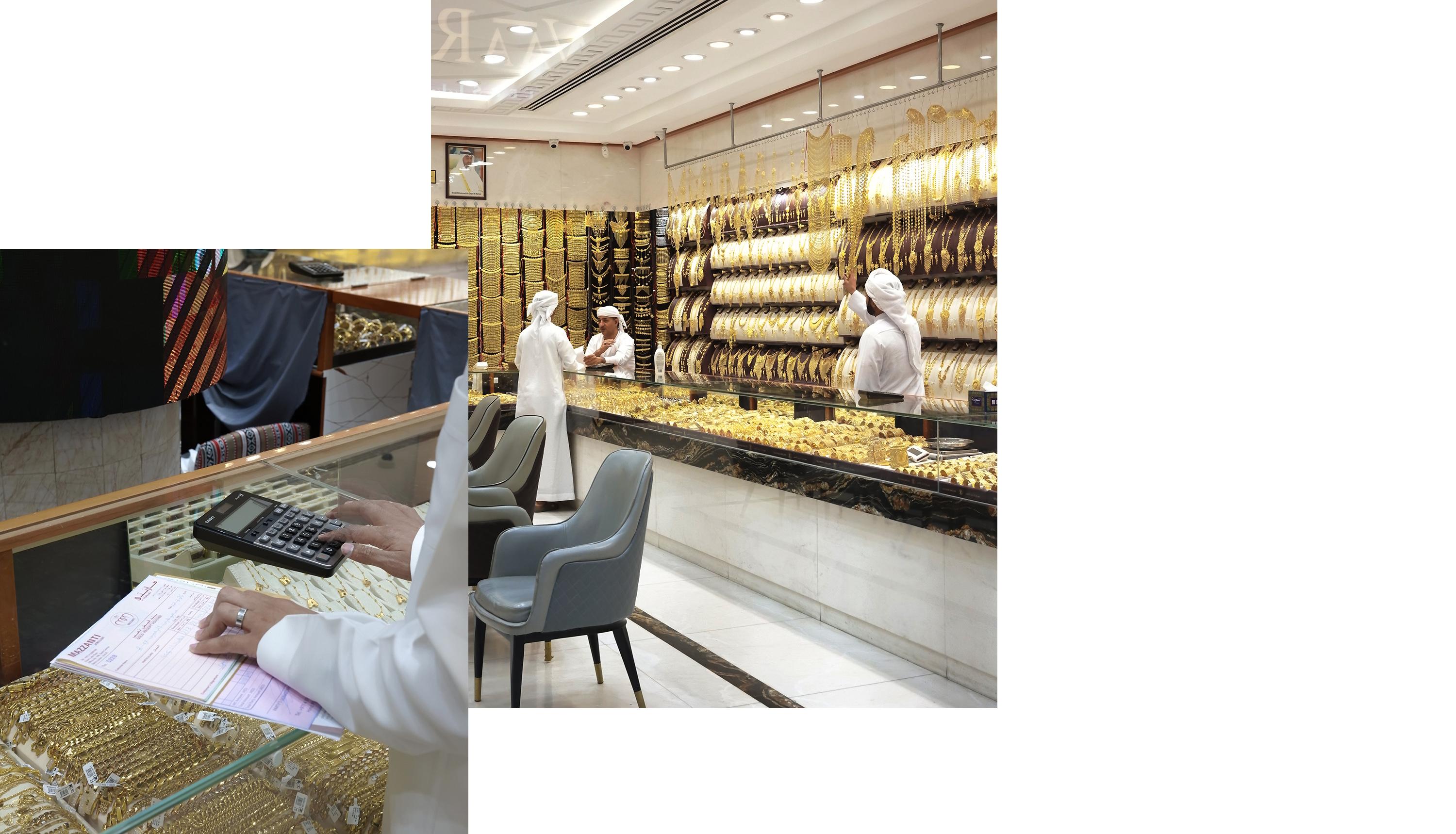 少し道を外れると、ゴールド・スークへ。民族衣装に身を包んだアラブの人々が電卓を叩いて金の価格を計算している様子を見るのは、なんともエキゾチックでユニークな体験だった。