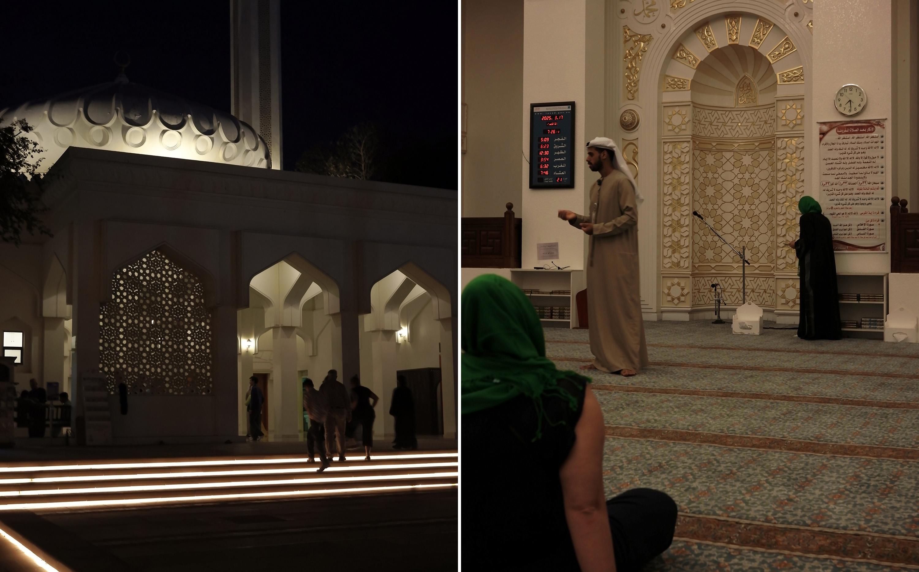 《シェイク・ムハンマド文化理解センター》の方々の案内で近くのモスクに移動し、1日に5回ある礼拝の、最後の回を見学する。静かな街にアザーンが反響し、そして溶けていく。
