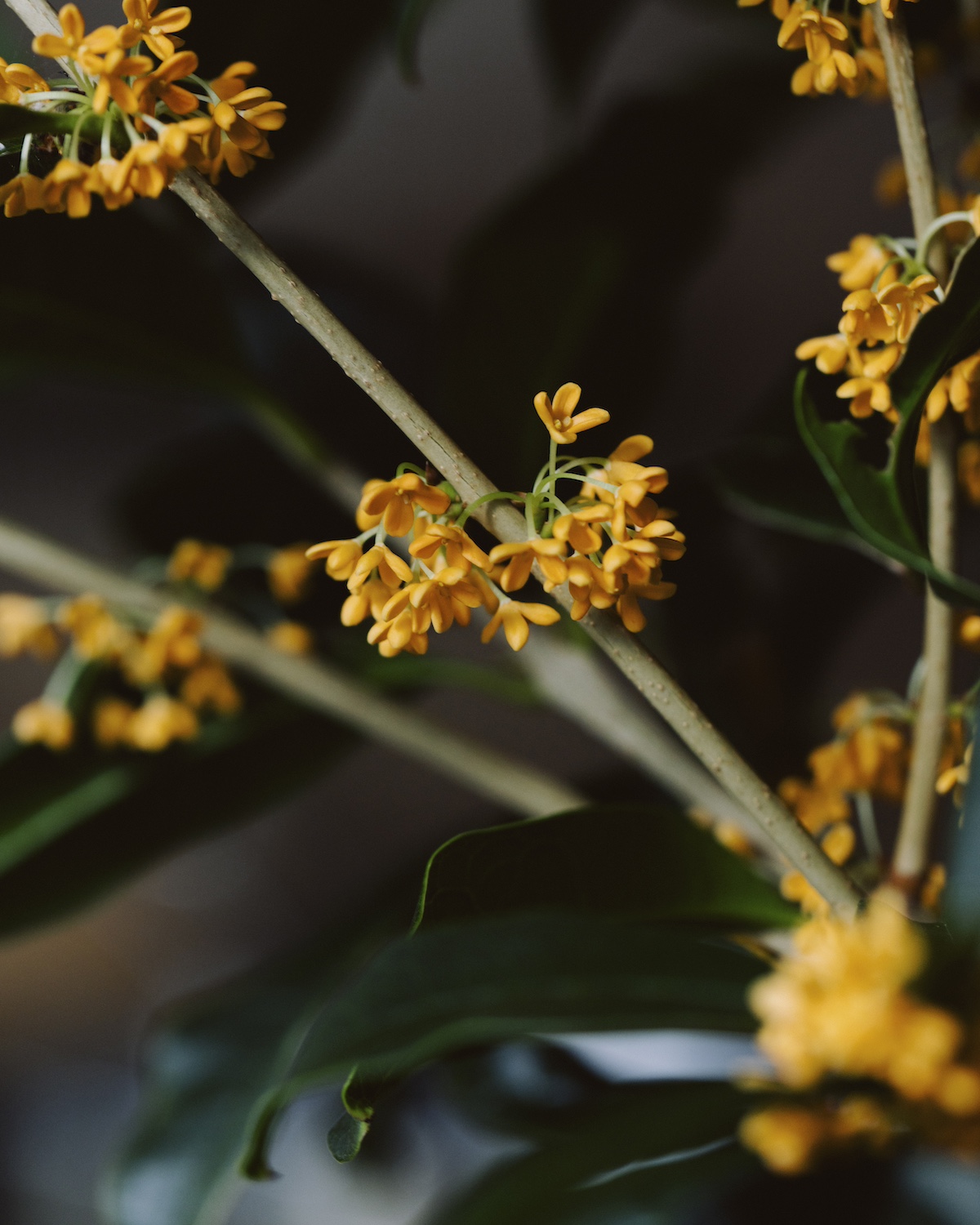 ジンのような蒸留酒の香りづけに使われることも増えています。季節感の演出にもすごく適しているので、秋になると料理にもよく使われますね。観賞用としてだけでなく、食の世界でも非常に有用性が高い。銀木犀や柊など同じ木犀科の植物は、少しずつ方向性が異なる良い香りの花を咲かせるので、とてもポテンシャルを感じています。