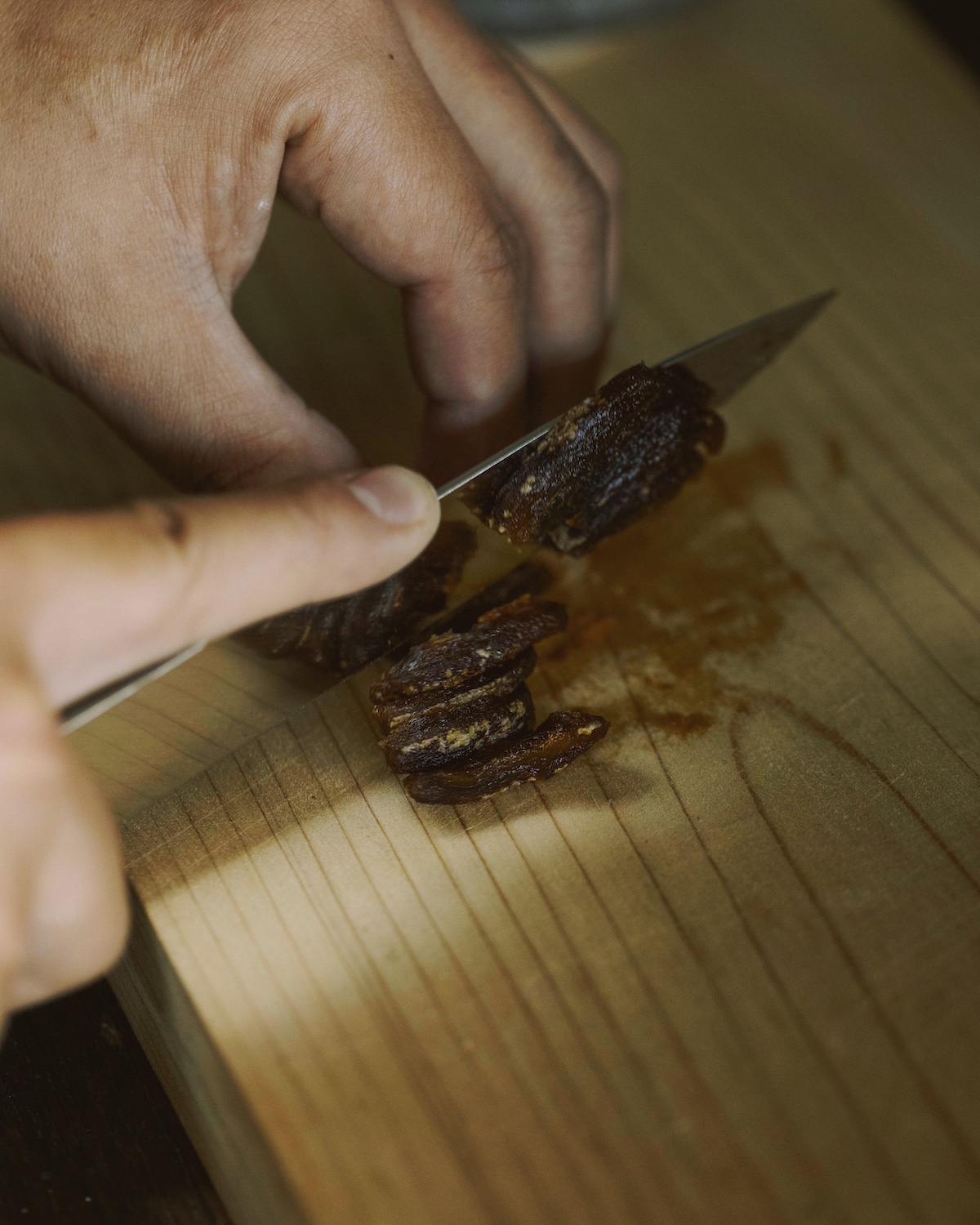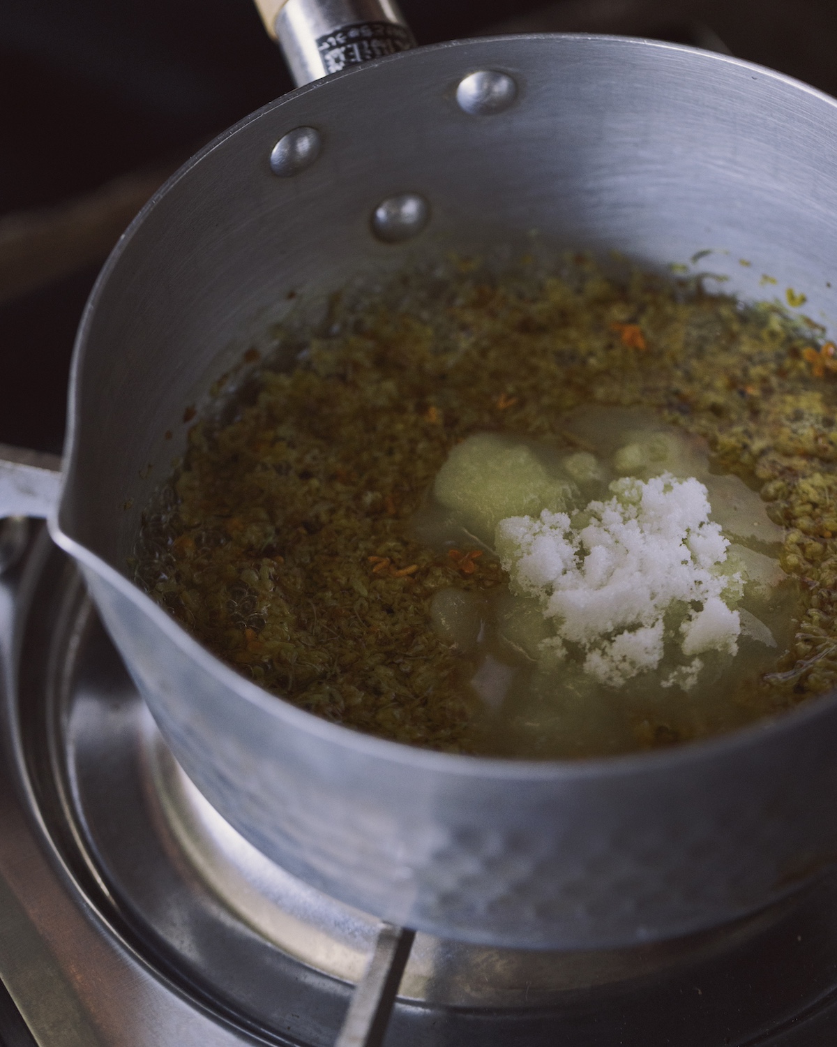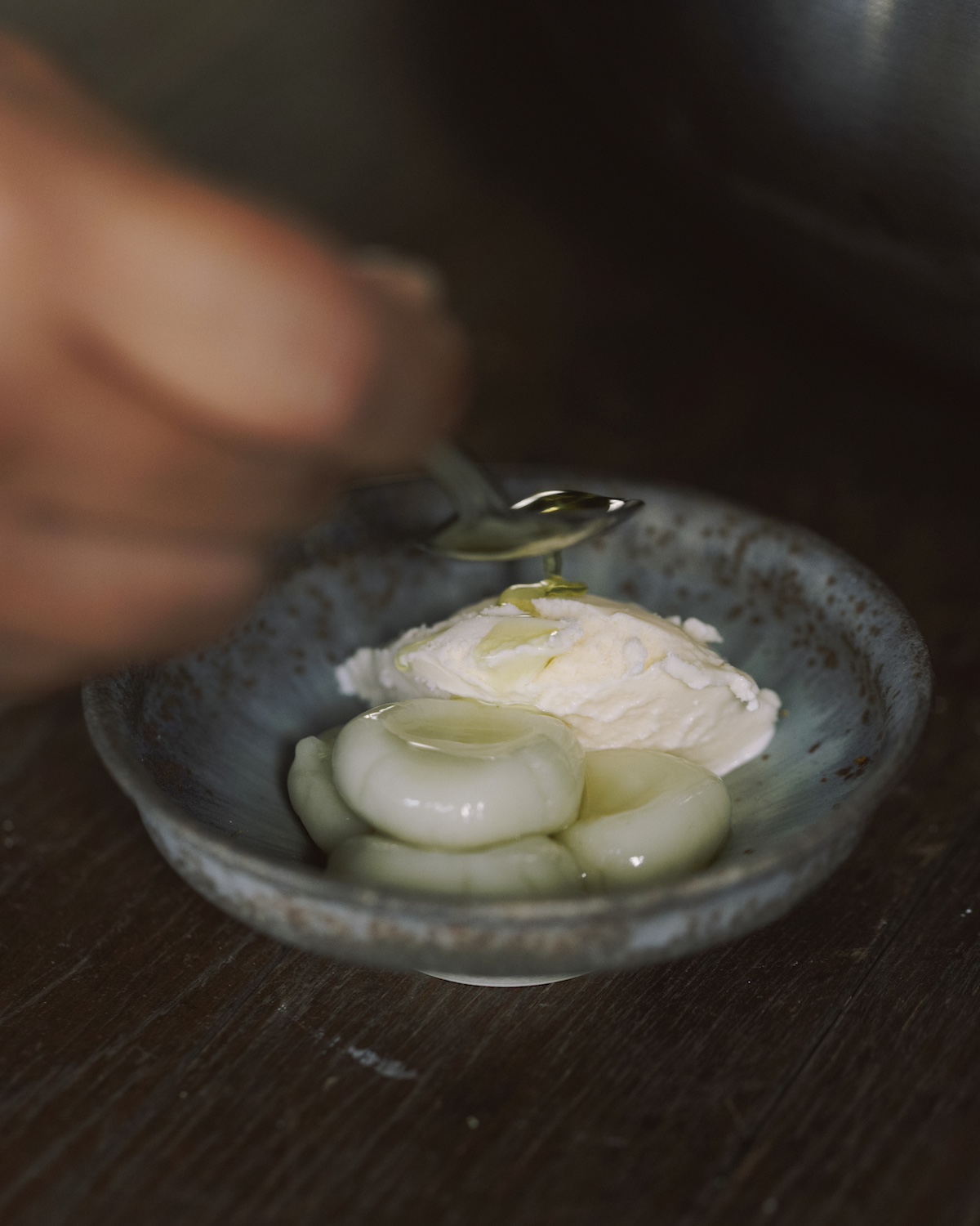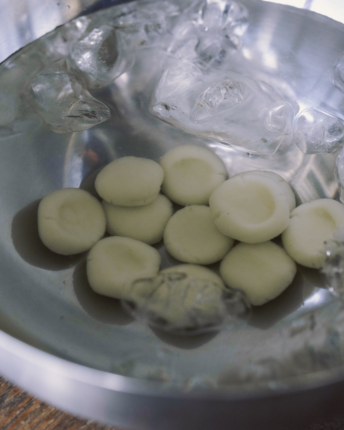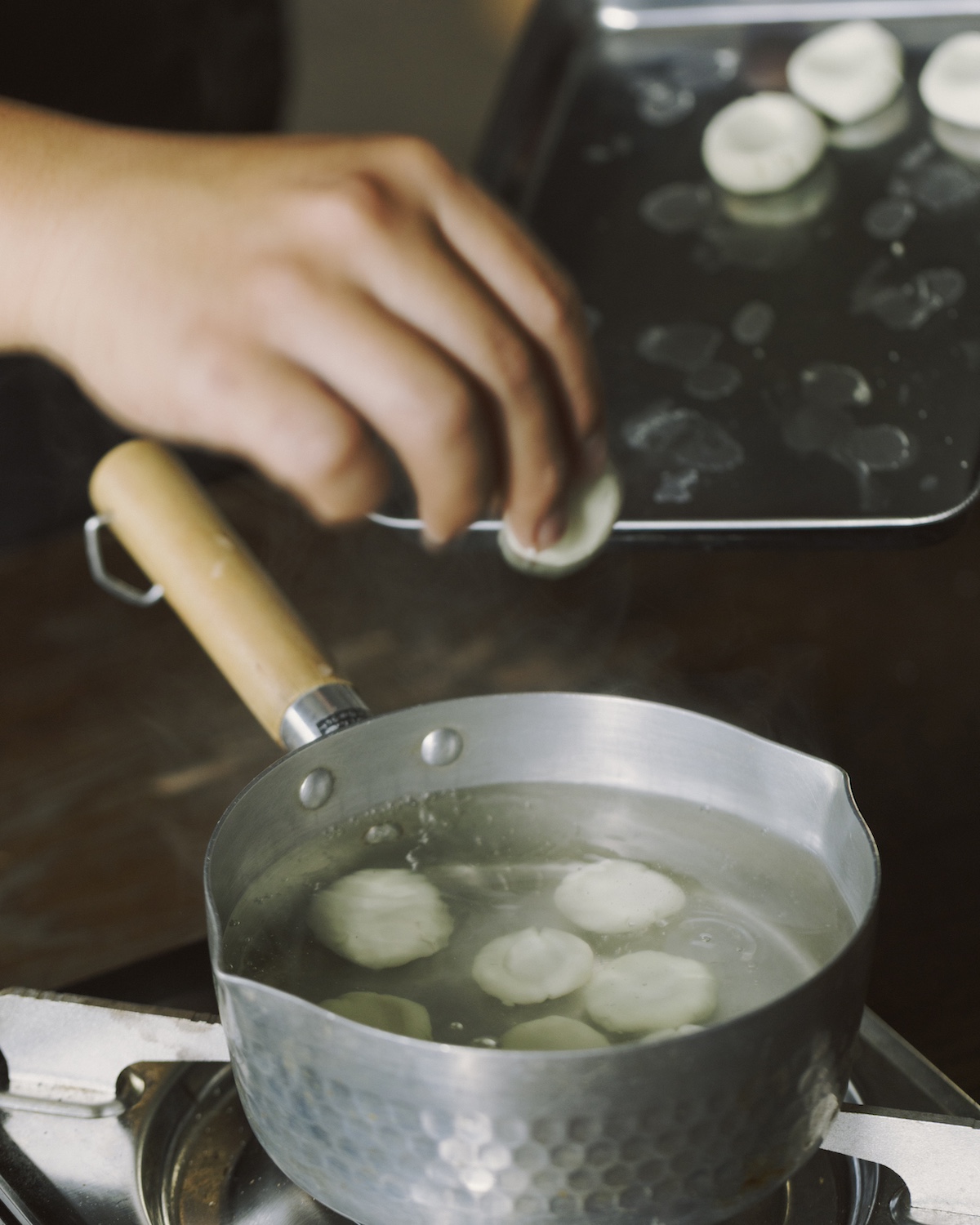 金木犀のお茶を出汁のように使って白玉を作り、同じく金木犀を使ったシロップと合わせました。台湾には桂花茶と同じように、桂花陳酒という金木犀のお酒があります。食用としての文化が深いことがわかるのですが、調べてみると台湾と日本の金木犀は、少し品種が違うそう。日本の金木犀できちんと乾花を作ったら、より香りが高いかもしれません。今回は、フレッシュの金木犀も入れています。ぜひ花を収穫して、食用として使ってみてください。