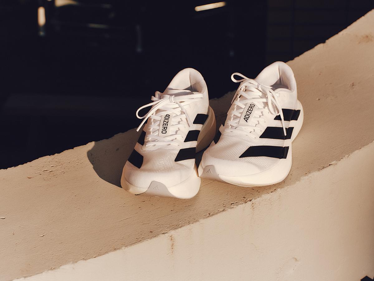 今、記録のためのランニングシューズといえば〈adidas〉の《ADIZERO ADIOS PRO EVO1》だろう。フォーム素材を厚く積んだカーボンシューズにして、片足138g(27cm相当)という規格外の軽さ。その分、耐久性は「フルマラソン1レース分」とも言われている。ソールのラバーもフィルムのように薄く、削りに削った設計だ。エチオピアのティギスト・アセファはこのシューズを履いて驚異的な世界新記録を樹立した。そのスピードは《EVO 1》の革新性を示し、スーパーシューズ戦争をリードしている。
