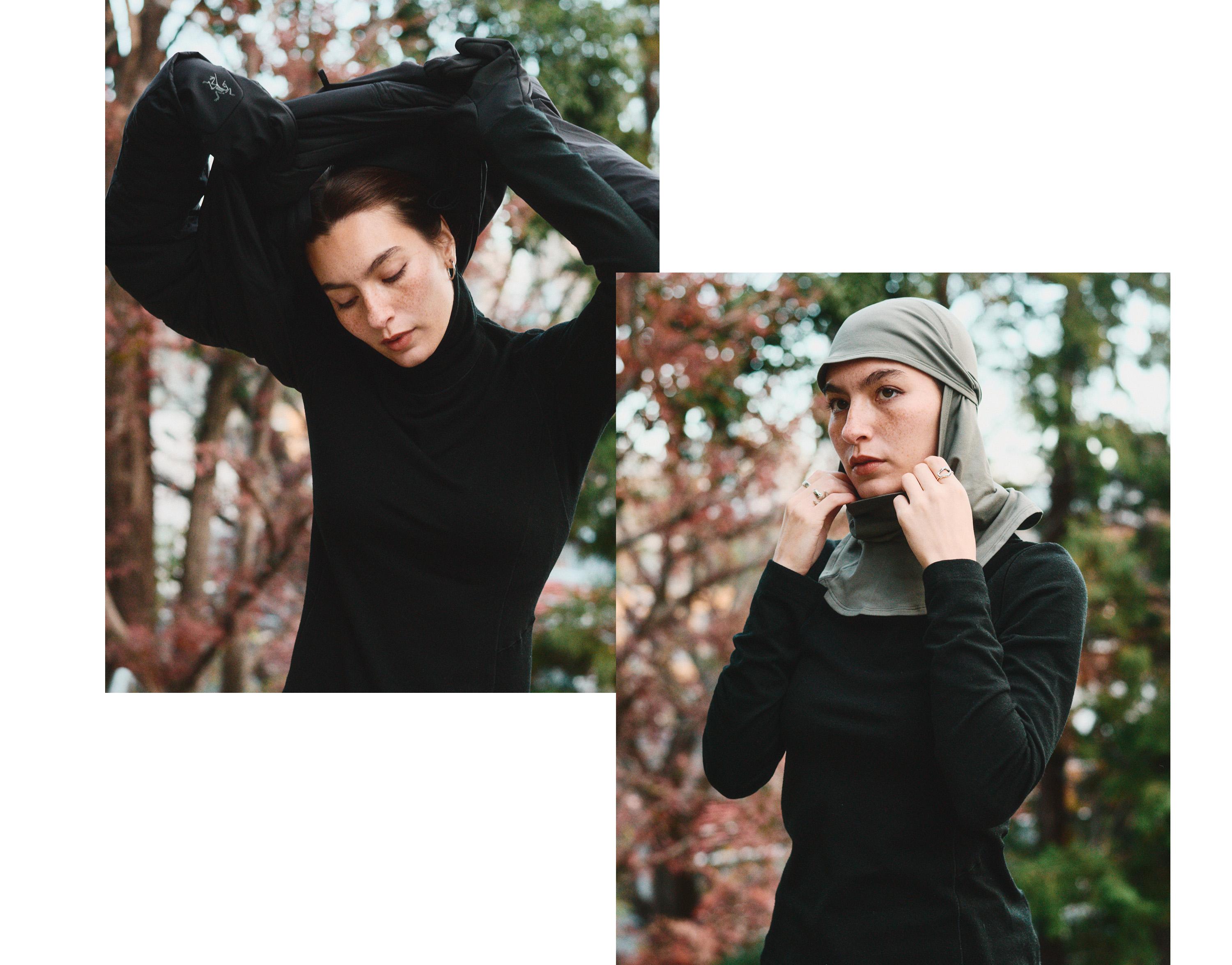 シューズ《NORVAN 4 NIVALIS WOMEN》 42,900円、ジップアップ 59,400円、フーディ 24,200円、タイツ 19,800円、パンツ 34,100円 、バラクラバ7,700円、グローブ 14,300円、以上アークテリクス、問い合わせ先:アークテリクス ゲストサービスセンター 公式サイト