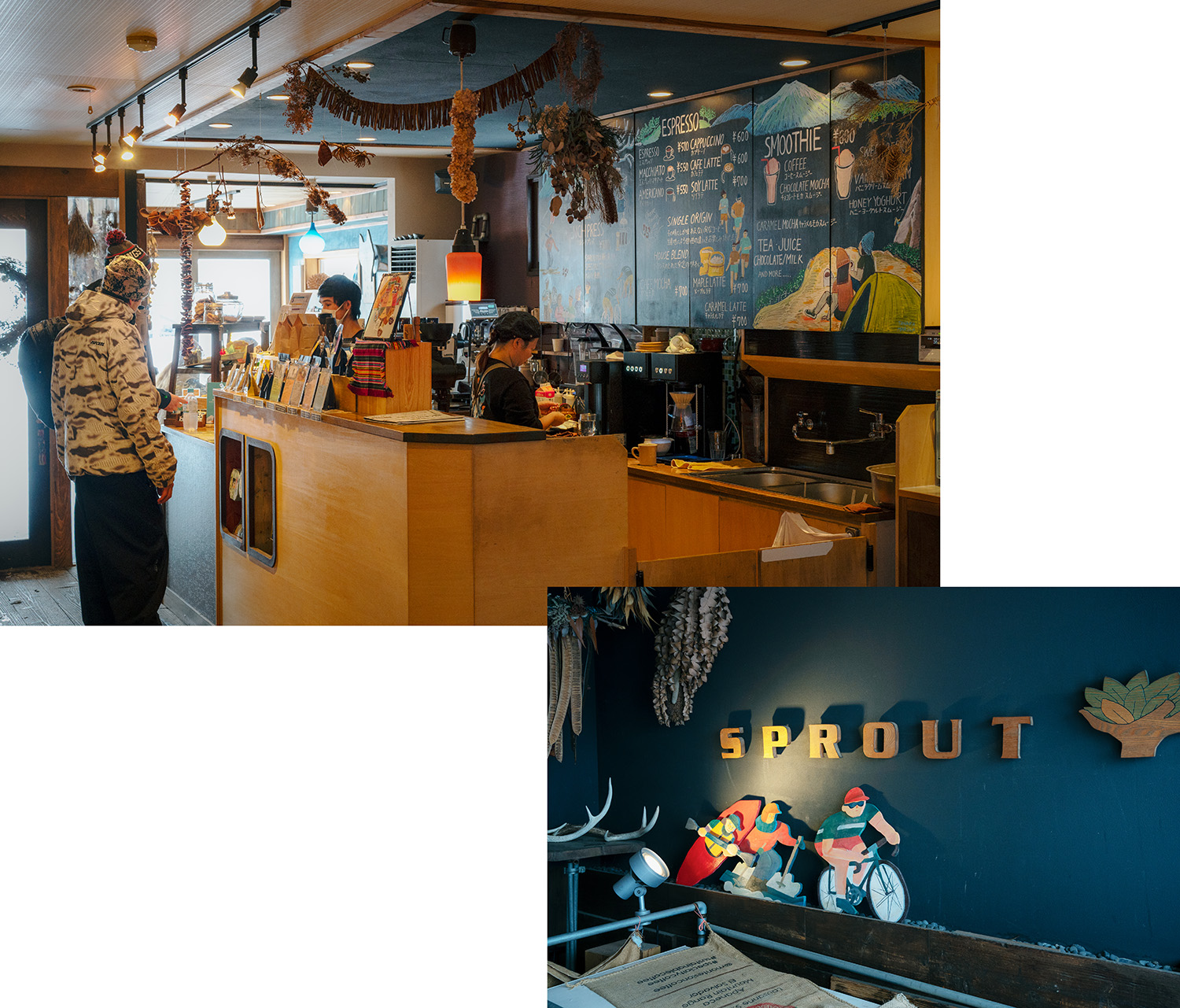 倶知安駅前からすぐの立地に、2009年にオープンしたカフェ。HP内にある「コーヒーを飲みながら地図を広げ、遊びに出かける作戦会議をする。」というコピーの通り、店内には雪山の途中に立ち寄る外国人で活気に溢れている。扱うコーヒーはすべて自家焙煎で、オルタナティブなショップらしい空気に満ちている。